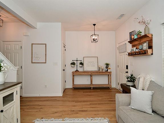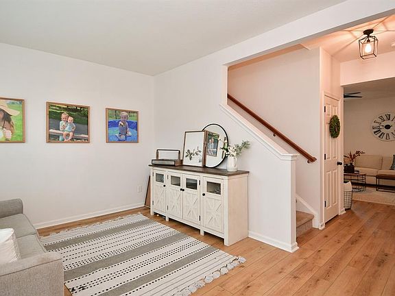 This beautifully updated home in popular Timber Valley neighborhood features 4 bedrooms/2.5 bath, an open living/kitchen, and separate dining room. A large center island, 42 inch professionally painted cabinets and solid surface countertops are showcased in the kitchen. LVP flooring throughout downstairs, bathrooms and laundry room. Laundry room is conveniently located upstairs with all bedrooms. Great lot with water running through the backyard! Flooring, kitchen and bathroom updates, as well as new paint throughout completed in 2021.