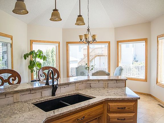 Beautiful ranch home with walkout basement in highly desirable northwest Bismarck location. Total 3,226 finished square feet. 3 bedroom plus office and 2 1/2 baths. Main floor features spacious living area, master suite, and office with hardwood floors. Brightly lit kitchen and dining area have updated stone countertops, backsplash, and ceramic tile flooring. Master suite has separate shower, whirlpool tub, and walk-in closet. Main floor has vaulted and coffered ceilings. Lower-level includes extra large second bedroom with expansive closet; third bedroom with walk-in closet; spacious family room with gas fireplace; wet bar; and multipurpose room currently used as second office. Covered deck and lower level patio face northeast, providing relaxing places to spend warm summer afternoons overlooking backyard with mature trees and shrubs. Three stall, 4-car garage is sheet rocked, textured and painted. Contains garage sink, floor drain, niche, and extra deep stall.