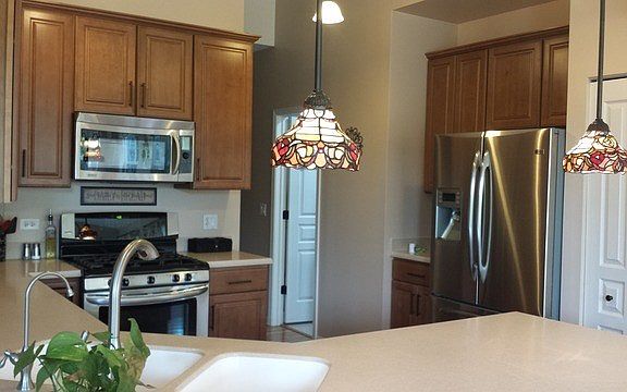 Beautiful, neutral, light and bright one level living. Finished basement has 9' ceilings. All SS kitchen! RO water. Hardwood floors. Vaulted ceilings. Skylights. Pendant lights. Sun room. Paver porch & patio with extra wide sidewalks. One of the largest lots in RBFs, a real sanctuary to relax. Fenced yard, no houses behind. 3 car garage with extra overhead door to backyard. Shed. Everything you want is already here.