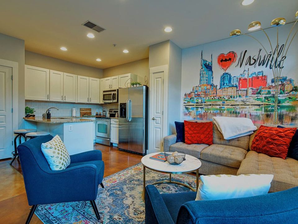 This inviting townhome in the heart of Nashville's West End will make you feel right at home. Nestled in a quiet haven with mature trees, this neighborhood is perfect for walking and enjoying the peaceful setting. You can easily walk to nearby restaurants or Parthenon Park to enjoy the water and sights. The townhome features free parking in a secure garage with two dedicated spots and offers keyless entry for convenience. Spread across three stories, this home is managed by a trusted partner to ensure a comfortable stay. The townhome boasts a chef's kitchen complete with a coffee bar and dining peninsula, perfect for preparing meals and enjoying them in the comfort of your home. The living room is furnished with comfortable furniture and a smart TV for streaming your favorite shows and movies. Games are provided for entertainment, and the in-unit washer and dryer come with laundry pods and detergent for your convenience. Bedroom 1 features two queen beds, an ensuite full bathroom, a smart TV, and ample closet space with hangers. Bedroom 2 offers a thick queen bed, an ensuite full bathroom, and an ensuite full office with a standing desk, printer, and monitor. Towels are provided in both bedrooms. Located in Nashville's West End, this townhome is surrounded by a serene environment with mature trees, making it ideal for leisurely walks. The neighborhood offers easy access to restaurants and Parthenon Park, where you can enjoy the water and sights. Its central location ensures you're never far from the city's attractions. There is absolutely no smoking indoors and no parties allowed. The primary guest who booked the reservation must be at least 21 years old, meet verification requirements, and stay for the entire reservation. Guests are legally and financially responsible for any damages, whether accidental or intentional. A separate e-signed rental agreement is required to finalize the reservation and grant access to the home.