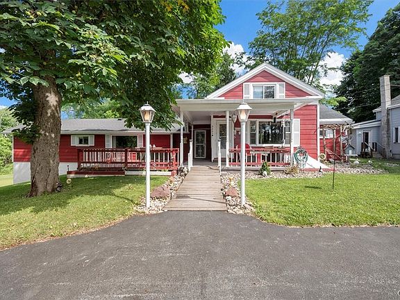 Here is your chance to own a private country homestead on a dead end street but still be close to all amenities! This very loved farmhouse is larger than it looks and has been carefully expanded over the years. It has 5 bedrooms with two full baths and central air. Three bedrooms with both bathrooms and laundry are all on the first floor for easy living. Enjoy the view of the almost 9 acres of land from the covered front porch and front deck or the private rear deck. There is a two car garage plus a two story barn perfect for all your country living needs. The property borders Oneida Creek so don't forget your fishing pole.