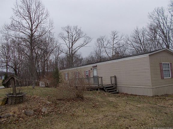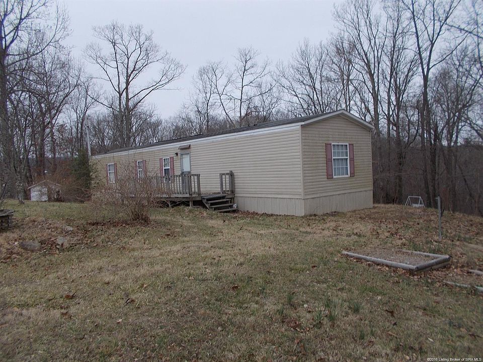 FISHING CAMP CLOSE TO PATOKA. A 2007 mobile home with some appliances. New dishwasher, stove & refrigerator. Large master with private bath & walk-in closet. Large living room and eat-in kitchen. Large detached garage with electricity & plenty of lighting for fishing boat, trucks & cars. Beautiful scenery out the back. Mature trees, rock formations and a spring to the right side. Number of rooms, measurements & sq. ft. are not warranted. If critical buyer should verify. PRICE BELOW MARKET VALUE. CLOSE TO LITTLE PATOKA BOAT RAMP.