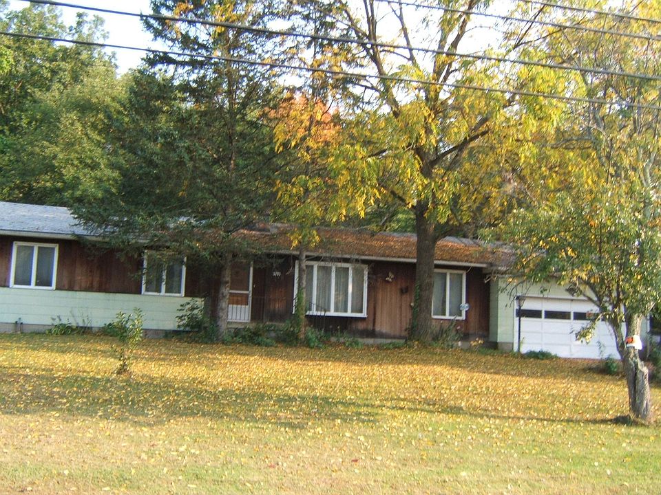 Country Ranch minutes from center of town. Bright sun room in rear with many windows to enjoy nature set on over 3 acres. NEW furnace. New Siding, NEW ANDERSON windows, NEW Oil tank, NEW hot water tank, NEW well pump. New gutters. Cozy stone fireplace. Level 3 1/2 acres. LOW taxes. Walk up attic over large garage for storage.