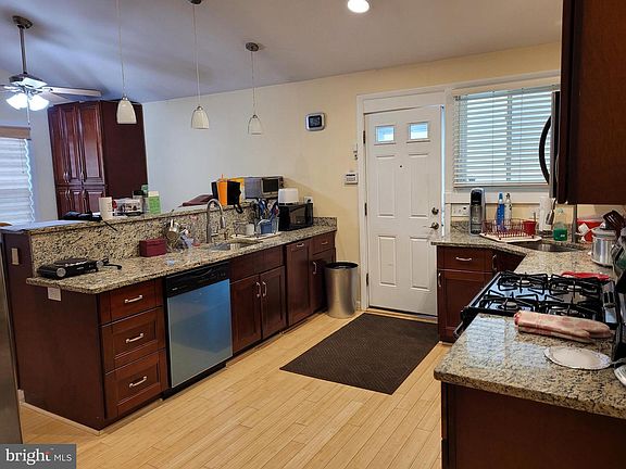 Beautifully maintained 3/4 bedroom 3 bath split level with updated kitchen, granite countertops, wood floors, driveway, central air, finished lower level with family room, guest room, full bath, laundry.
