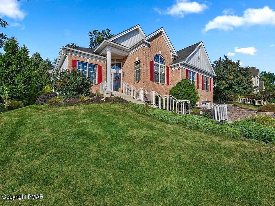 This exceptional home in the premiere Country Club of the Poconos golf course community, boasts upgraded cabinetry and finishes Perfection is personified in this well maintained one owner home. Sumptuous living all on one floor with a gorgeous expanded primary bedroom suite, one additional bedroom and 2 baths. Large bonus room provides infinite possibilities and a beautifully finished basement offers additional room for entertaining. If that is not enough, enjoy sitting out and cooking on a maintenance free Trek Deck that is accessible from your four season sunroom. To top it all off, when the electric goes out your whole house generator will keep you comfortable.
