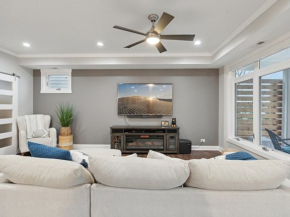 Built for luxury & designed for entertaining-- This 2018-built home on the Fox River offers 1 bedroom, 2 bonus rooms, & 3 full baths! Enjoy unobstructed river views & high-end finishes throughout. Clad in HARDIE BOARD SIDING, the home is filled w/ light from abundant windows, all w/ remote-controlled blinds. Enter through the SCREENED SUNROOM or the OVERSIZED 2.5-CAR GARAGE w/ a Bluetooth opener. HEATED FLOORS THROUGHOUT THE MAIN LEVEL, & open-concept design connects the kitchen, dining, & living areas w/ panoramic water views. Kitchen boasts HIGH-END STAINLESS APPLIANCES, center island, GRANITE COUNTERS, & SOFT-CLOSE CABINETRY. A MAIN-LEVEL BONUS ROOM & FULL BATH add convenience & flexibility. Upstairs primary suite has a large walk-in closet, private bath, & glass sliders to a WRAPAROUND BALCONY. The 2nd upstairs bonus room also enjoys BALCONY ACCESS, & the bright 4-SEASON ROOM is a perfect space to unwind. Outside, find the built-in HOT TUB w/ a privacy wall & pergola, a COVERED WRAPAROUND DECK, & a fully equipped CABANA BAR with electric, shelving, & a sand pit. Enjoy the ultimate waterfront experience with an XL PIER w/ 2 mounted wave-runner lifts, electric hookups, & 3 boat slips! The driveway, designed for extra parking, offers the option of RV parking w/ 35-AMP SERVICE. Create lasting memories w/ every sunset, gathering, & moment shared in this exceptional home!