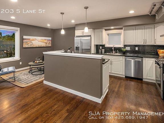 Panoramic views of Mt. Baker, Lake Washington and Mt. Rainier! This spectacular, contemporary home has extensive upgrades and offers living flexibility. The ground floor has a kitchen and bath and would be an excellent option for an Au Per, teenager or extended family. The main level is open floorplan and has amazing views and a sunroom that looks right at I-90 with Mt. Rainier views. The kitchen features stainless appliances, granite counters and a nice sitting bar. Also located on the main level is a powder room, dining room and a powder room. Three bedrooms are on the upper level, along with the master bedroom, master bathroom and another bathroom. Be sure to check out the rooftop deck with some of the best views available! 1 Month Free is lease signed by 5/31 for a 12-18 month lease. Up to 2 pets allowed with an additional $500 deposit per pet. $13.50 monthly utility billing fee will apply. To schedule a showing, call the phone number on the ad or schedule online. *Bonus Amenity Included* - If the property requires/uses furnace air filters a portion of tenant's total monthly amount due will be used to have HVAC filters regularly delivered to their doorstep under the Utility & Maintenance Reduction Program. This saves 5-15% on your energy bill and helps ensure a clean, healthy living environment. Under Seattle's Fair Chance Ordinance, SMC 14.09, landlords are prohibited from requiring disclosure, asking about, rejecting an applicant, or taking an adverse action based on any arrest record, conviction record, or criminal history, except for registry information as described in subsection 14.09.025.A.3, 14.09.025.A.4, and 14.09.025.A.5, and subject to the exclusions and legal requirements in Section 14.09.115. Breakfast Nook Central A/C Eating Bar Finished Basement Lake Views Laundry Room Mountain Views Private Yard