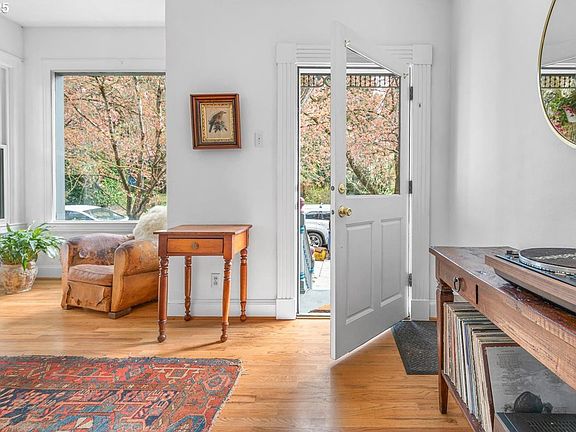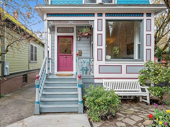 Step into a beautifully preserved Victorian in the heart of SE Portland’s sought-after Hosford-Abernethy neighborhood. With soaring 9-foot ceilings, and large picture windows, this home is filled with natural light and classic charm. Fresh interior paint, new kitchen counters, and newer appliances offer modern convenience, while schoolhouse lights from Rejuvenation add a refined touch. Upstairs, skylights bathe the space in natural light, leading to a beautifully remodeled bathroom, and two spacious bedrooms. The kitchen nook and upper floor provide stunning downtown views. Outside, the oversized private yard features new landscaping and a side patio—perfect for quiet mornings or entertaining. The basement adds storage, a mudroom, and the potential for an additional bathroom and a sweetly appointed 3rd bedroom. This welcoming neighborhood is known for its strong sense of community, especially during the annual "Pink Party," when the street comes alive with cherry blossoms in full bloom. With tree-lined streets, local cafés, trendy shops, culinary hotspots, theaters on Hawthorne and Division, a 93-walk score, and inviting art culture, this home offers a perfect balance of historic character and modern living. Don't miss this one!