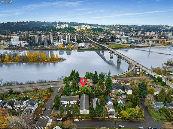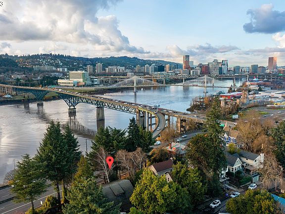 Wonderful Brooklyn neighborhood. Captivating views of the Willamette River, West Hills, Ross Island Bridge, and Downtown. Two primary suites, each with it's own bathroom. This wonderful home is deceiving, and much bigger than it appears. Renovated in 2000, the rooms have high ceilings, are large, and light filled. Hardwood floors flow throughout the house. A chair lift to the 2nd level allows for easy access to the bedrooms. The living room with river, island, and bridge views, includes a full length sun room with French doors doors opening to a back deck. A cozy kitchen boasts bay windows, stainless appliances, gas range, eating area, glass cabinets, and butler's pantry. There is a formal dining room with pocket doors, period bay windows and lighting. Adjoining the entry is an office with French doors to offer privacy. Upper level primary bedroom retreat features a balcony, amazing river and city views, large walk-in closet with built-ins, and en-suite bath. The washer-dryer laundry is conveniently located on the upper level. The lower level bonus rooms allows for abundant storage, bathroom plumbing, private entrance, and utility area. An oversized, two car, 539 square foot, detached garage with opener adds additional storage and work space. The yard is enchanting and private. The driveway holds additional parking for boat or RV. Convenient close-in location, walkable to Downtown Portland, bus line, as well as SE shops and eateries.