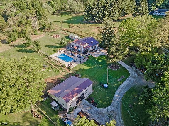 Unique opportunity for an extensively renovated colonial on 5 acres in Massilon! Situated at the end of a quiet private road, this lovely property features an in-ground pool, a barn, and a charming home with tasteful updates throughout. The front door of the home opens into a sun-filled living room that is open to the family room. Here you will find a stone accent wall with a wood-burning fireplace. Head back to the kitchen which includes space for an eat-in area and a full complement of appliances including a newer dishwasher and a fridge that was just replaced! The kitchen is open to a lovely sunroom with a wood stove and a sliding door to the yard. There is one spacious bedroom on the first floor that was just redone with engineered hardwood flooring. A completely renovated full bath and a laundry room complete the first floor. Upstairs, there are 2 spacious bedrooms including the owner's suite. Here you will find a walk-in closet and a luxurious full bath with heated tile flooring, a dual sink vanity, elegant soaking tub, and a step-in shower. The attached garage can fit 3-4 cars lengthwise and / or provide space for a workshop. The barn includes water, electricity, and space for 4-5 horses. Additional updates include a new metal roof in June 2022, metal barn roof in 2020, hot water tank in 2020, several newer windows, newer well pump, newer furnace and fuel tank, pool pump and filter in 2022, and central AC that was installed! Don't miss this one - it will go fast!