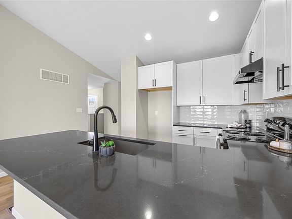 Modern Kitchen – Featuring soft close cabinets, quartz counter tops & vaulted ceilings!