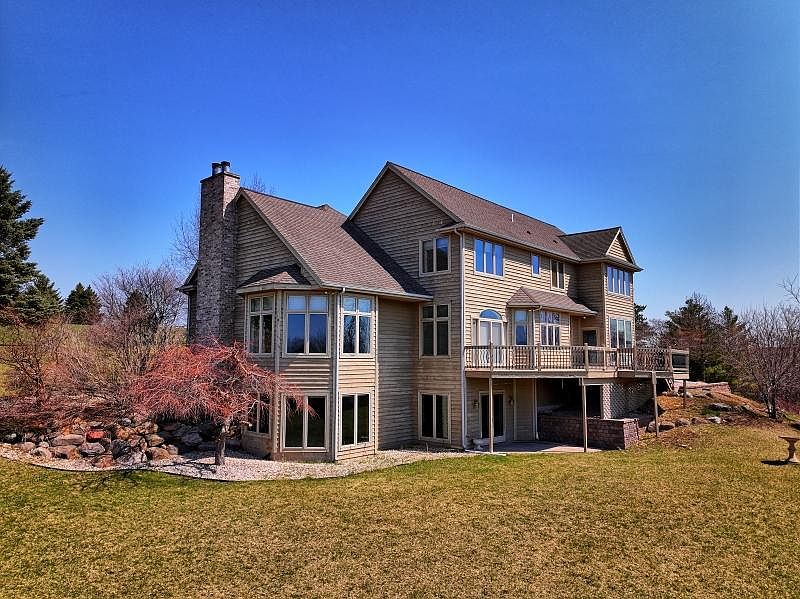 Custom Hillside home on 85 ac w Water Frontage/Creek. Features 3 bd/3.5 ba, Great Rm w/Gas FP, Sunrm, Mud Rm, Main Level Laundry Rm, Eat-Kitchen, Office w/ cherry built-ins, Dining Rm. Finished walkout LL with Family Rm/Rec Room/Wet Bar, Bath w/steam shower, and Gas FP. Impressive Panoramic Views of Woodlands, Trails, Creek, and Lake/Marsh. Abundance of Wildlife and Tranquility for Outdoor Enthusiasts, Hunters, Equestrians and Kennel buyers! Property incl 10 ac of Fenced Pasture, 3 Fenced Paddocks, HEATED 60x120' riding arena w/ Mirrors, att. pole barn w/ 7 horse stalls, Wash Rack, Hay Storage Loft, and Heated Viewing Area w/bath and Tack Rm. An add. 36x64' pole barn; Private Lake Access w/Pier. Property sold with 5 parcels totaling over 85 ac of land, AS-IS sale. Motivated seller!