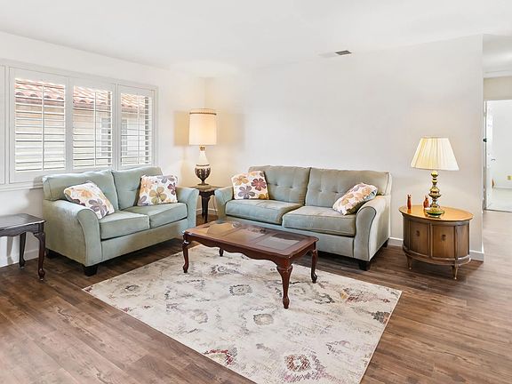 This freshly painted, cozy 2 bedroom, 2 bathroom home invites you in with stunning views boasting 1054 sqft of luxurious living in the highly sought-after community of Ascot Villas. Stepping into your new home, the open floorplan welcomes tons of natural light flooding the home complimenting your newer floors leading you to your new patio to enjoy the immaculate views. The kitchen is equipped with a brand new stove and dish washer, seamlessly connecting your kitchen to the living and dining room, creating a perfect space for entertaining guests and enjoying quality family time! The unit features 2 generously sized bedrooms, each with 2 large closets, plantation shutters and views! Ample storage space is available throughout, along with newer central heating and air. Enjoy the convenience of a private balcony, ideal for summer sunsets or morning coffee. This unit also includes a private 2 car garage along with washer and dryer hook ups in the garage. This unit also comes with a newer water heater and a new roof that was recently replaced by the HOA. Here you are a short walk to a nature preserve which was the San Luis Reygolf course. Minutes away from shopping at River Villas Plaza, Daniels Market, River Village Cinema & Much more.