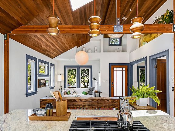 Custom Beacon Hill Craftsman Home. Spectacular views of Lake Washington, Bellevue, & the Cascades. Unmatched detail & design incl. vaulted ceilings, exposed beams, & an open concept layout showcasing natural light from skylights & hardwood floors. In-floor heat in bathrooms, formal dining, & high-end kitchen has granite counters & SS appliances. Expansive & private view deck among treetops enjoy entertaining & see gorgeous sunrises. Terraced backyard w/ planter beds, fruit trees, & flagstone patio ideal for hanging out around a firepit. Fully fenced-in front yard w/ beautiful, mature landscaping. Prime location on coveted 19th Ave S. An easy walk to light rail, acclaimed restaurants, groceries & parks. A unique gem of a Seattle property!