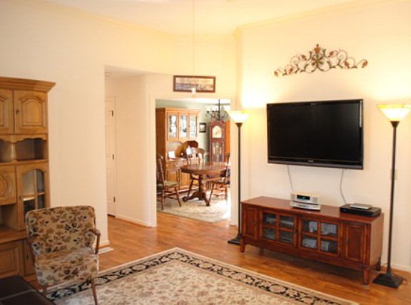 SUPERBLY MAINTAINED & UPDATED HOME! Cedar siding painted in 2011. New gutters & guards. Security system. Entire interior has new, quality laminate flooring. HVAC new 2009. Kitchen has light maple cabinets. Frig.,DW,Micro new in 2008. Living Rm.-wood-burn FP,bookcase. Laun.Rm. Master bth.-jac.tub,sep.4ft.shwr. MBR-wlk-in cl. SPLIT FLOOR PLAN.Custom epoxy coated 2 car garage floor. Deck plus paver patio. Truly a park-like setting! Walk to pool.