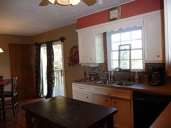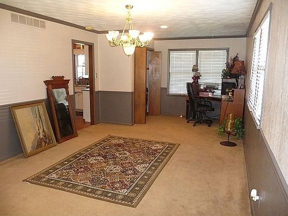 A covered front porch greets you as you walk up the curved sidewalk to the home. Inside you find a spacious living room, cheerful eat-in kitchen with pantry. There is an oversized formal dining room that has room for a home office. The main level also consists of a master bedroom, 2 guest bedrooms & a large full bath. The lower level has endless possiblities. Nice game area, one full bedroom & one full bath. The one car garage is located on the lower level w/plenty of storage room and work space. Large wood furnace also is located in the garage with NO MESS bringing in wood through the home. Is ducted throughout the entire home making propane bills economic if used.