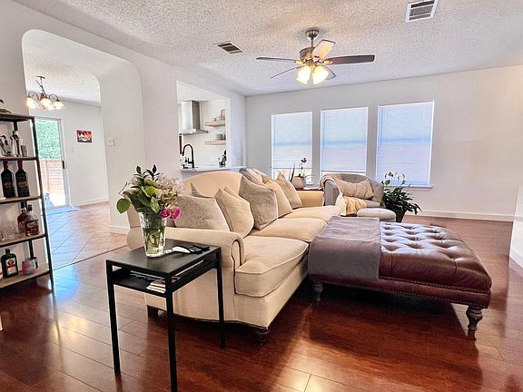 Sleek white quartz countertopsWood privacy fenceLarge backyardNew flooring