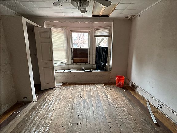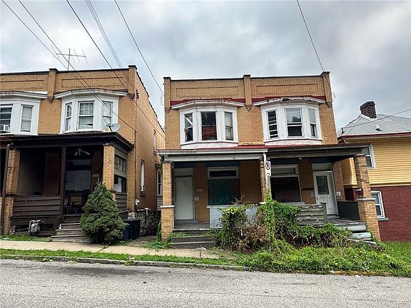 Two-Bedroom brick row home in a central location. Features include large rooms, high ceilings, a covered front porch, and a full basement. Ready for completion of renovation!