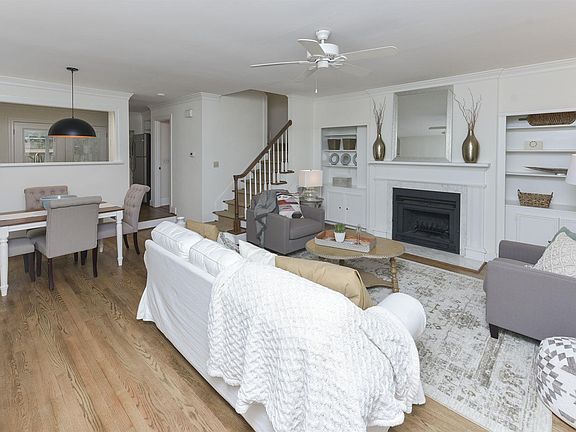 - RoomLivingRoomFeatures: Fireplace, Floors-Hardwood, Molding, Books, Ceilings-High (over 9 Ft), Ceiling Fan