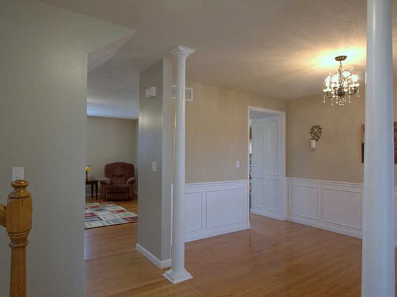 From the moment you step inside this lovely home, you will not want to leave! The gleaming hardwood floors extend through the spacious foyer and through the dining room and living room. Columns and mouldings lend an architectural detail in the dining room, all visible from the entryway. Enjoy a kitchen with plenty of cabinet and counter space. Beautiful granite (new in 2017) adorns the kitchen and island, complementing the matching stainless steel appliances and modern flooring (also all new in 2017) and extra-deep undermount sink. The family room boasts a lovely brick-surround gas-log fireplace. Upstairs, enjoy a spacious master suite with a huge bathroom with two-sink vanity, large linen cabinet, jetted tub, and separate shower. Ceiling fans provide year-round comfort in all of the bedrooms. Plenty of closet space and additional storage above the garage. Roof new in fall 2014! Outside, enjoy a spacious deck and patio overlooking the lovely yard. View the floor plan and panoramas!