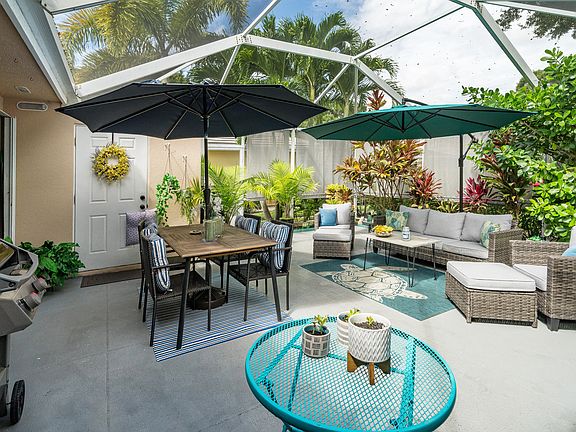Stunning 2/2 single level DiVosta townhouse with large screened in-patio, located in highly desirable community in the heart of Palm Beach Gardens. The minute you enter, you are greeted with a beautiful open but cozy great room. Tile & wood laminate flooring throughout. Freshly painted interior with upgraded fixtures and lighting. Cathedral ceilings in the main living area. Roomy storage shed located on patio. There is lush landscaping as well as privacy shades on the screen. The unit comes with two assigned parking spaces and there is a large community pool. Its also super close to Costco, Target and other shopping, Restaurants, Schools, Gyms, Beaches, I-95. This unit should definitely be on your list of properties to see.