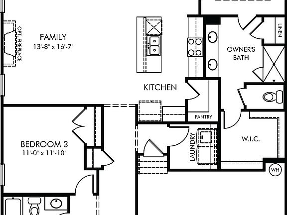 Enjoy happy hour on the Camden's covered back patio. Inside, the sprawling kitchen island overlooks the family room with optional fireplace. In the owner's suite, dual sinks and a walk-in closet simplify busy mornings.