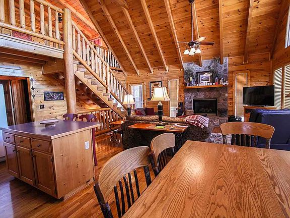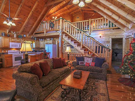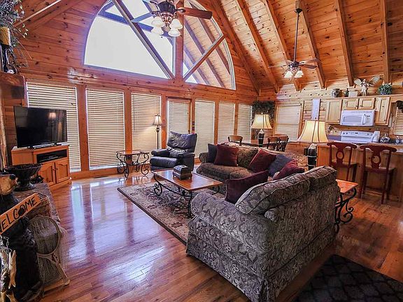 Take in a spectacular view of Wears Valley from the porch of this beautifully decorated cabin. You are surrounded by beauty outside as well as inside from the solid pine cathedral ceiling to the solid oak floors and mountain stone fireplace. Enjoy recreation and entertainment in the Game Room with full pool table, Foosball and large screen TV with surround sound and theater seating. Soak up the views while you soak in the Hot Tub overlooking the valley below. Excellent rental history!