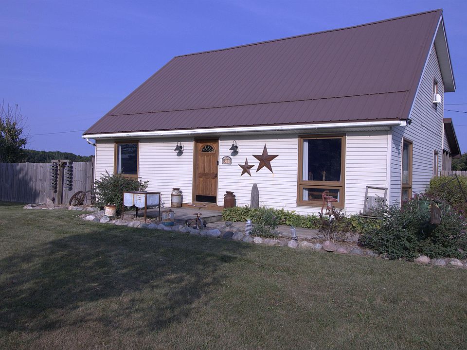 Check out this 3 bedroom/ 2 bathroom home with vaulted ceilings and a steel roof. The kitchen, dining and living room are an open space for easy flow of family and friends. Unique features include wood beams and staircase that lead you upstairs to the bedrooms. The ceiling is also wood that gives it a cozy vibe. Galvanized chair rail in the downstairs brings warmth in the spaces. The backyard is fenced in to keep your children and pets safe with space for them to run and play. The bonfire area is ready to enjoy your evenings eating smores and relaxing. Several fruit trees to provide fruit and shade with plenty of room to add a garden or play set for the children. The detached 2 car garage with a special man cave provides storage as well as extra space to hang out. This 1 acre parcel is centrally located to Alma, Ithaca, Edmore and Stanton.