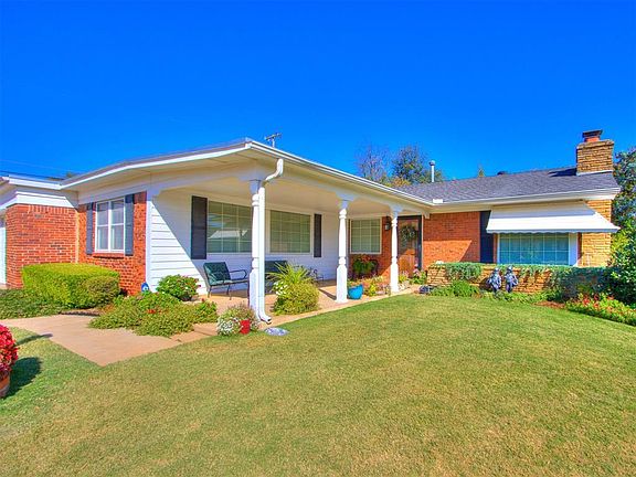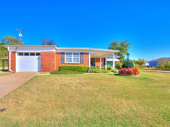 Charming single-story ranch on a corner lot in the desirable Skyline neighborhood of Oklahoma City! This 3-bedroom, 2-bath home spans 999 sq. ft. and offers a covered front porch and backyard patio—perfect for relaxing outdoors. Built in 1951, the home features a brick masonry veneer exterior, combining classic style with modern comfort. Inside, enjoy the blend of carpet and tile floors, providing both coziness and durability. Located near Will Rogers Park, this home is ideal for families seeking a peaceful setting with city conveniences. Schedule a tour today ! BUYERS TO VERIFY SCHOOLS.