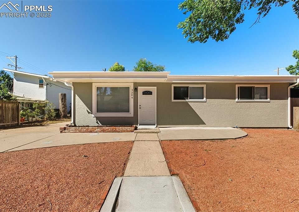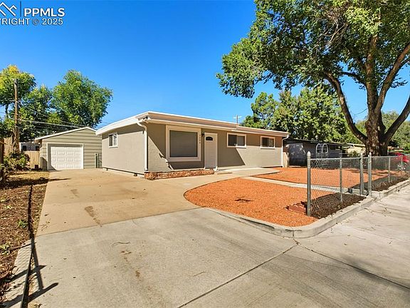 Cozy Ranch with Alley Access and Detached Garage! This practical ranch floor plan home offers easy main-level living. The open floor plan creates a functional main space, letting in plenty of light through a large picture window at the front. The floors are finished with a mix of carpet and wood laminate, offering a durable and comfortable surface. For your convenience, the laundry hookups are located on the main level. Bedrooms are straightforward and comfortable. The master bedroom features double closets for added storage space. In one of the smaller bedrooms, you'll find a decorative beadboard wall accent. The bathroom features a farmhouse-style vanity with storage below. The property is designed for manageable upkeep. The front yard is xeriscaped, a water-wise feature, and the lot has a mature tree for natural shade. The backyard is fully fenced, providing a private outdoor area. A gate in the fence offers direct alley access to the backyard, leading straight to the 2-car detached garage. This functional home, with its practical features, offers an opportunity for easy living.