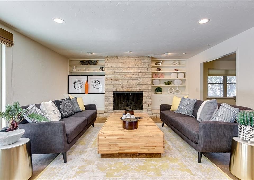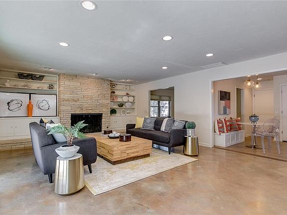 Your chance to own a recently renovated piece of midcentury modern architecture has arrived! Set back on a lot with mature trees overhanging the large lawn, the property has a calming presence that stands out for the neighborhood. The bright & open layout, complete with a mix of wood & stained concrete floors & large windows in every room, is extremely intentional. Upon entering, you will be drawn to the cozy living room that centers around a floor-to-ceiling stacked stone fireplace with built-ins, as well as the vibrant kitchen that has been entirely remodeled for maximum utility & beauty. The kitchen includes marble backsplash, large center island & SS appliances. Just off the kitchen, schoolhouse lighting creates a breakfast space for casual meals. Three bedrooms, two-and-a-half baths (that's right!), and a plethora of storage provide ample room to suit your needs. Other unique features include his & hers closets, enclosed interior washer/dryer closet & storm shelter. See it today! 2020-04-20