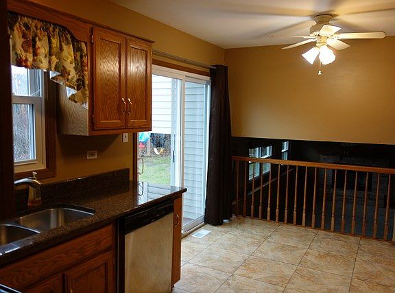 4 bedroom quad level, updated and clean! New windows! New roof! New bedroom carpet! New refrigerator (on its way). Newer fenced in yard! Vault ceiling in combo living and dining rooms! Much fresh paint! Granite counter-tops in kitchen that overlooks super sized family room with brick fireplace! Basement with additional rec room and 4th bedroom! Lower level bath with shower and granite counter top! Upstairs bath has granite top and double sinks! All bedrooms are nice sized! Huge coat closet at entry! Deck in back with shed and play set in fenced yard! Totally move in ready, all appliances stay!