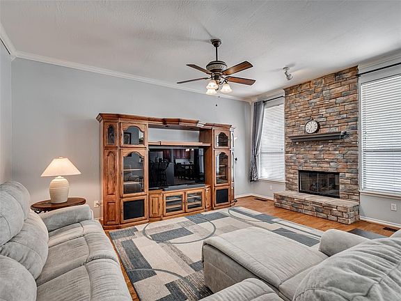 Beautiful Westside Norman home!! This 2 story home has 2 bedrooms up and 2 down. Kitchen has loads of storage, stainless appliances, Gas range, wall oven, Pantry, Island, breakfast bar, coffee bar and dining area. Formal dining room. Lower living room has wood floors and gas log fireplace on the switch. Primary Bedroom on lower level that is large enough for a King sized bed. Primary bath has double vanity, tiled shower, jetted tub and wrap around closet. Second bedroom on lower level has adjoining bath and walk in closet. Dedicated office/study. Laundry Room.