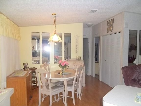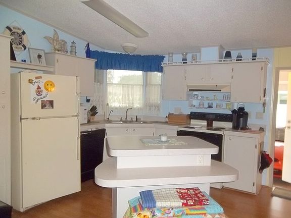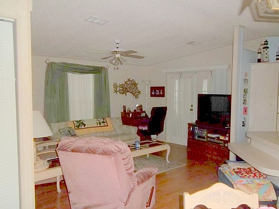 Fully furnished home has lovely wood floors and island kitchen that opens to the living room and dining room with French doors that lead to a huge enclosed Florida Room. This home is welcoming and offers a large storage tat accommodates 2 golf carts and motorcycle and plenty of storage. Add to that the double carport with painted driveway and you have a fantastic home in a Golf Course community. SB1149 Over 700 homes available at http://www.fourstarhomes.com