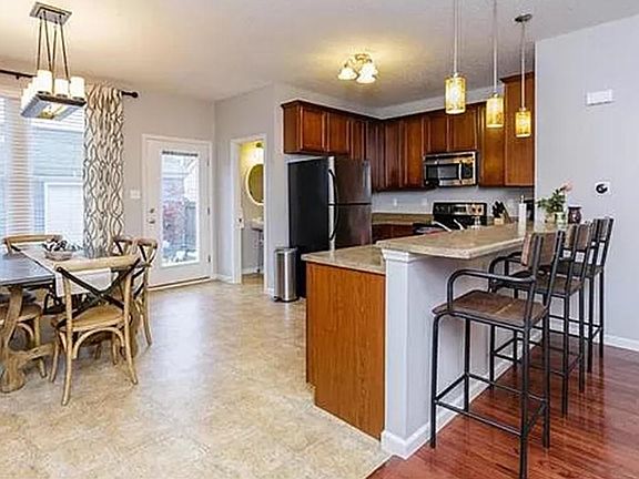 Spacious 3BR, 3.5BA home in gorgeous New Town St Charles. This 2,000 sq. ft. home includes a finished basement with wet bar and full bathroom, two car garage, fenced-in back yard, washer & dryer, and stainless steel appliances. First floor includes hardwood floors and open concept living room. Enjoy amenities such as movies and concerts at the amphitheater, two pools, lakes, fishing, kayaking, walking, 4 restaurants and all other amenities NT has to offer. Located in the Orchard Farm School District. Application fee applies. Renter is responsible for all utilities. No smoking and no pets. First month's rent and security deposit due at lease signing.