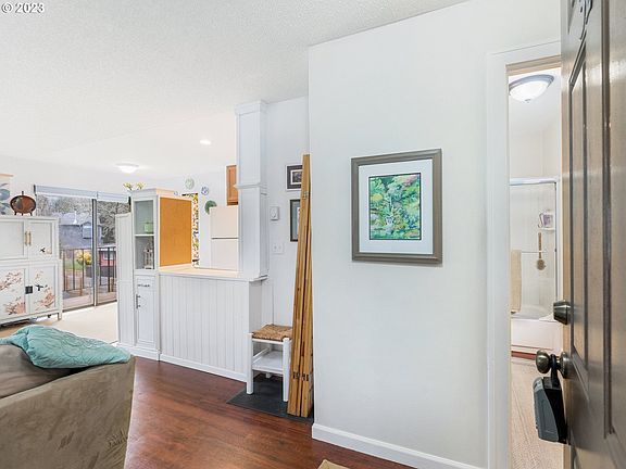 Upper-level condo in an amazing location, within minutes to downtown and close to Multnomah Village area shops, restaurants, and art center. Super cute 1 bedroom, 1 bathroom with 652 SF. Bright & light, with treetop views and nice deck off the back. Kitchen includes all large appliances. HOA includes pool, sewer, trash, water. Complex is on a quiet street with designated parking spot close to entrance and a great pool for summertime fun!