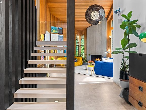 The pioneering spirit of Marvin Witt's 1977 contemporary design meets the forward-thinking innovation of Jeff Kovel's Skylab Architecture here, at the end of a peaceful meandering street named Upper Cascade Drive, located in the heart of Portland's Arboretum nature preserve that is surprisingly just minutes from the hustle & bustle of the city center. Witt's original vision brought to life a home with ceilings that stretch towards the sky, vaults that break conventional forms, & windows that erase the boundary between indoor & outdoor spaces. Skylab's renovation elevates this vision, infusing the home with an abundance of natural light, sweeping views of the tree canopy, & a fluidity that continues the home's dynamic relationship with its natural surroundings where living begins inside & spills into the Arboretum & onto handcrafted Ipe decks. The full home renovation by the lovely & creative owners took the saying "details matters" deep throughout the structure including HVAC, plumbing & electrical overhaul. The daily routine of showering becomes a tranquil retreat in the reimagined primary bathroom. Even the historic elements that remain meet the avant-garde; the iconic Leroy Setziol front door remarkable as is, the oak parquet floors are reimagined with white stain, revealing a modern mosaic of wood grain & geometry that are stunning! In the bathrooms, custom dimensionally-folded tiles & Walker Zanger marble reflect the home's original angular leanings, while the concrete kitchen island & the sculptural white oak staircase, stand as modern accents where form & function move together.Skylab's reinterpretation works in concert with Witt's original blueprint, creating a home that is both a nod to the 70's & the perfect step into the current day-one of the city's best demonstrations of the transformative power of design when it dialogues with time.Architectural legacies can be both preserved & evolved while creating the most beautiful living experience! Case in point! [Home Energy Score = 1. HES Report at https://rpt.greenbuildingregistry.com/hes/OR10225140]