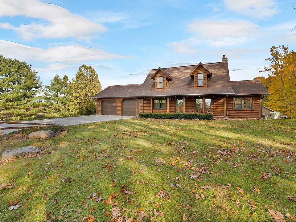 Tucked back this log cabin is the true Up North dream while still being conveniently accessible. Cozy, warm, and full of rustic charm, this 3 bed, 2 bath home features an inviting great room with wood beam detail and a full stone double-sided fireplace. Enjoy peaceful mornings on the full screened-in porch or sunsets from the wide front porch. Lean into evenings by the fire and privacy that feels miles away from the city. If you’re looking for a year-round residence or a weekend retreat, this property offers space to breathe, relax, and reconnect with nature. Featuring whole house generator, 2nd garage for hobbies and full walkout lower level (workout room unfinished ceiling). It's the getaway you dream of - quiet & surrounded by beauty. Your simple and charming cabin life starts here.
