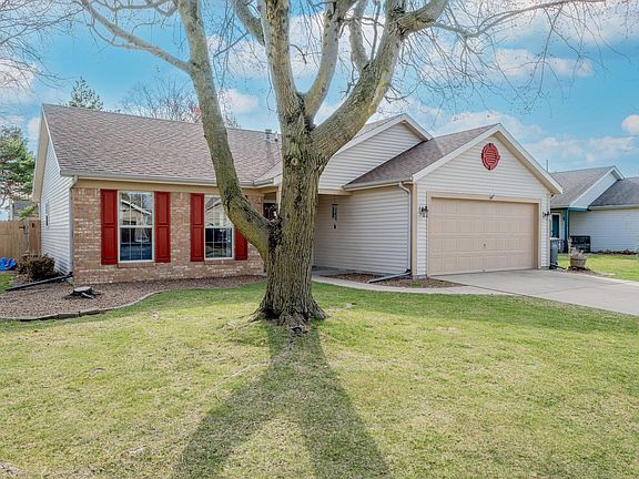 All there is to do is to move in! This open concept ranch has been freshly painted with new carpet and is ready for its new owner. Home features three bedrooms, each with a large walk-in closet, and two full baths. Kitchen has newer appliances, backsplash, and neutral white cabinets. There is a nice pantry and an eat-in area open to the living room. Patio door opens to the backyard with a paver patio, outdoor firepit, and full privacy fence that was just painted (2025). Updates include roof (2015) and gas water heater (2021).