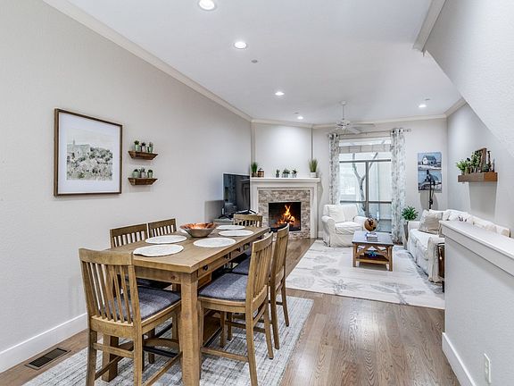 Just reduced — this Wycliff Heights condo is an excellent value! Set within a small gated community of just 11 condos, this home offers an oversized two-car attached garage, high quality construction and features two spacious bedrooms with ensuite baths, plus a powder room conveniently placed off the main living area. A soft, designer-curated color palette flows throughout, highlighted by robin’s egg blue kitchen cabinets that bring charm and warmth. The living area also offers a rare gas fireplace—one of the few in this price range—with gas included in the HOA, making it an inviting spot to enjoy all fall and winter. Just off this main floor, a glass door opens to a private balcony, perfect for a breath of fresh air. The primary suite features large windows and abundant natural light, creating a bright and restful retreat. On the top floor a flexible bonus living area awaits, ideal for a second living space, home office, or workout room, with more natural light pouring in through glass doors that open to the rooftop deck. Whether it’s morning coffee, evening drinks, or quiet moments to unwind, the rooftop is the perfect escape. Perfectly positioned in Oak Lawn near Dallas’ favorite dining, shopping, and nightlife, this home blends convenience with comfort.