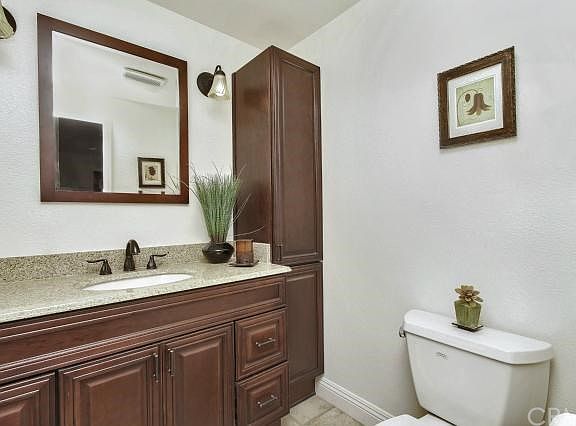 Single Family Home located at the end of a cul-de-sac street . High vaulted ceilings in living room gives a light and airy feel to this fabulous home. Formal dining room open to the living room. Separate family room also located on the main floor with romantic fireplace and French doors leading to the back patio. All kitchen appliances are upgraded stainless steel and cabinets have been recently refinished. Fresh paint throughout the entire house. Beautiful dark laminate hardwood floors. Main floor powder room totally upgraded. Separate inside laundry room. Up stairs a large master bedroom with lots of light and high ceilings. Large walk in closet. Two other large bedrooms and an additional full bath. Two car attached garage plus room on the driveway to park additional cars. Low HOA's and No Mello Roos. Excellent schools in the area. Lots of shopping and nature trails close by. Call Lynne Suzanski 949-422-1416.