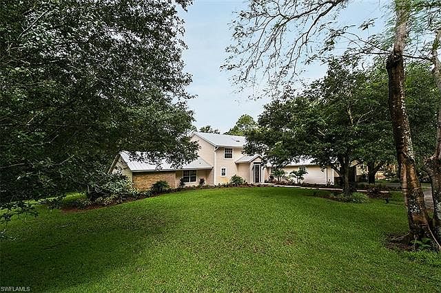 This is your opportunity to own one of Naples' most unique properties, with a gorgeous main house and separate guest house nestled on an oversized 2.73 acre lot in the middle of town. The main house features an old southern charm interior with open kitchen and family room concept, offering 4 bedrooms plus office, 2 full bathrooms, and 2 half baths. As you enter through the gate and down the main driveway to your new home, you'll feel a sense of serenity as you pass by the mature oak trees lit up by the custom landscape lighting. The property has been meticulously maintained by the owners, with a metal roof, brand new landscaping, a completely re-sodded lawn, resurfaced pool, newly stucco'd guest house, and many more upgrades. Here you can experience the finest country style living conveniently located in the heart of Naples. Your private estate awaits you!!