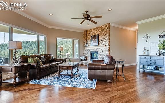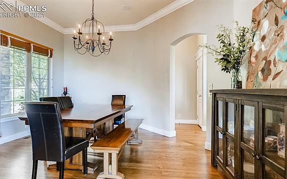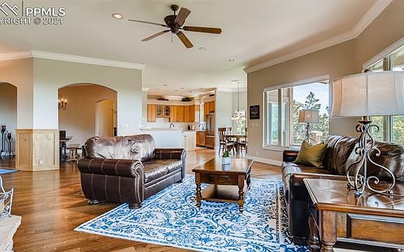 This home sits at the top of Peregrine where Blodgett Peak is literally out your front door and Blodgett Open Space is out your back. A premier lot where the house is perfectly situated so all you see are incredible views and not your neighbor's home. Friends say you feel as though you're living in a tree house. You will get lost sitting on your covered deck soaking up the mountain views or swept away by the city lights. The views are truly phenomenal! The wall of windows in the great room brings the outside in throughout this open floor plan. Gorgeous hardwood floors, Large kitchen with stainless steel appliances, large island, prep sink, pantry, new counters, new backsplash, new sinks and loads of countertop. Your kitchen table sits in a large nook surrounded by big windows and a slider with access to your covered deck. Formal dining is just a few steps away. Main level Master has an entire wall of windows, a slider to the covered deck, see thru fireplace and a walk-in closet with a quaint window seat that separates his and her sides. Master en suite has huge jetted tub, large window overlooking the mountain, steam shower, rain, massage heads, double sinks and make-up vanity area. First floor office has a closet (Possible 6th bd). Main level 2nd bedroom with large window seat. You will find a huge family room with a game area, large wet bar, tv area, and a slider to a flagstone covered patio. In addition to the many linen, coat closets there is a Mechancial/Storage Room just under 400 sqft of space for all your "extras". Home has sprinkler system, Invisible Fence, Central Air. Garage upper shelves, free standing cabinets, and all track systems are excluded. Garage also has lower built-in shelves which are included. One of the owners is a Licensed Real Estate Agent in Colorado. Photos will be uploaded Friday afternoon.