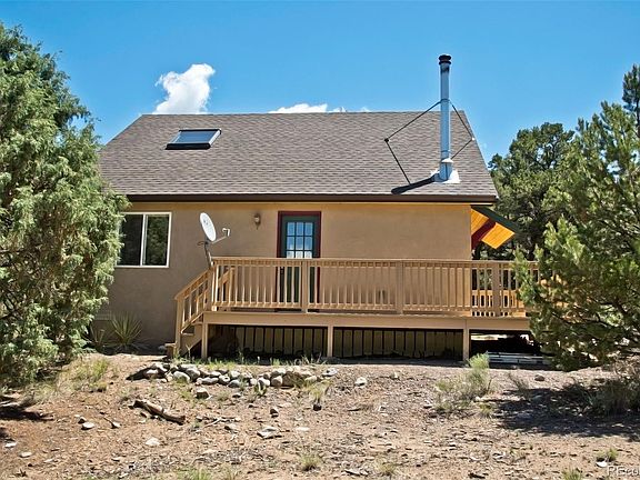 Escape to your own private haven in the Sangre de Cristo foothills, where peaceful seclusion & nature's beauty await. Come to unwind, meditate, reconnect or simply to live at a slower pace; the Baca Grande is ideal, famous for its unspoiled views & nature. Also its high-desert climate, w/ warm sunny days and cool starry nights. The custom, 1150sf 3BD/1BA home has many recent updates: new interior/exterior paint, ceramic-tile kitchen floor, French doors, range, refreshed carpets & bathroom grout. The spacious loft is a standout feature, offering luminous space that acts as primary bedroom and/or inspiring workspace, studio, den, yoga, meditation room, etc. The main level is open concept. The large great room has high vaulted ceilings, handsome cherry floors, cozy woodstove, & French doors open to wraparound deck. The corner kitchen has wood cabinets & room for an island or dining table. Off the hallway are utility, laundry, linen & coat closets. The full bathroom features tiled shower/bath. At the end of the hall, 2 bright corner bedrooms look out into the pinon-juniper woodland. The bedrooms & lofts are carpeted. The loft has space for sleeping + office/studio/exercise, or could serve exclusively as one of those. It is bathed in light, w/ windows on 2 sides & a skylight on the 3rd. Electric heat & hot water. Architectural shingles & stucco exterior. Steps from the top of Chalet 2 & spiritual centers. Nearby Cottonwood Creek, greenbelt & Liberty Trail. Only 15 min on paved roads to the small town of Crestone, an Int'l Dark Skies Place, w/ 2 local schools & burgeoning community. There are 2 grocers w/ organic/local meats & produce. Other amenities include cafes, restaurant, pub, hardware, USPS, galleries, gifts, apothecary, liquor store & more. It has hydrants, staffed firehouse, EMTs, parks, trails & rustic tennis/golf. Includes lot 3206, which can be consolidated with 3205 or developed separately. Escape the hustle & bustle - call today to schedule your showing!