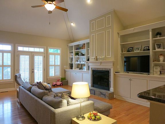 Fabulous Wakefield 2-story w/pool/tennis/golf available! Great loc and schools. 2-car Garage, lg Patio & Deck in wooded backyard. Spacious, open floor plan; hrdwd floors/plantation shutters/deep crown molding/window transoms/9' ceilings throughout. BIG vaulted LR w/built-in cabs & gorgeous FP; gourmet KIT w/lots of tall cherry cabs, granite ctrs, eat-at island, dbl ovens, gas cooktop, tile backsplash, passthru to LR. DR w/panel wainscot. Spacious 1st flr MBR w/tray ceil/lg WIC/luxury Bath. Huge Bonus/BR4!