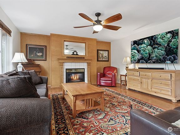 Silver Beach gem, 3bd/2ba. Open Concept, with beautiful hardwood flooring throughout the home. Wonderful location with mountains and valley views, easy access to Barkley Village and adjacent to a community park/playground. The Great Rm separates easily into dining and living area, the tiled gas fireplace, carved wood mantle w/mirror add warmth to the room. Primary bedroom with ensuite bathroom. Newer large capacity Samsung W/D stays as does the new refrigerator and a new gas furnace is located in the double car garage. Partly fenced back yard has apple, plum and pear trees, plus herbs and flowers. HOA has off street parking for recreation vehicles.