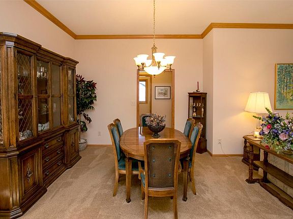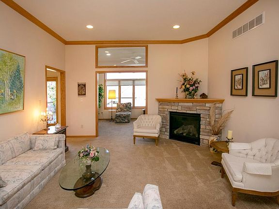 Move in ready 4 bedroom 3 bath end unit townhouse with everything you need on the main level. Master bedroom has large walk in closet and private 3/4 bath. The living room has a gas fireplace and opens up to a nice sunroom with loads of windows. The main floor has both a formal and informal dining space along with main floor laundry. The composite deck has a remote controlled awning with plenty of space for seating. Some other features include built in sound system, security system, crown molding, 2 thermostat zoned furnace, pull out drawers in kitchen and unit is located near guest parking. This one owner home has been well maintained and is the one you have been waiting for.