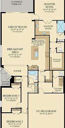 This home features 1,992square feet of functional living space and includes 3 bedrooms, 2 baths and a 2 car garage. An entertainer's dream, this home features an expansive great room which connects to the dining room and gourmet kitchen with oversized island and ample cabinetry and pantry space. The owner's suite is a private retreat and is generously appointed with an oversized walk in closet and spa like master bath with dual vanities and expansive shower. The two secondary bedrooms are tucked away to ensure your guests and loved ones privacy and independence. A well-equipped laundry room with added storage complete the Aragon which will not disappoint.