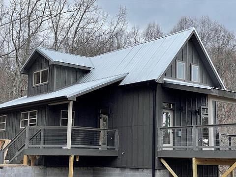 Brand new, complete and ready for occupancy! This is truly a uniquely designed, Smoky Mountain, modern-rustic vacation home offers the perfect balance of peaceful serenity, modern amenities, and breathtaking mountain views. Minutes away from Gatlinburg and Pigeon Forge and 7 miles from The Great Smoky Mountain Ferris Wheel. This luxury modern contemporary home features 2 bedrooms and a loft (sleeps 8), 2 baths, a great room, an expansive deck, and lower level family room. The kitchen is equipped with stainless steel appliances, granite countertops, and custom cabinetry. The master suite includes mountain views and a luxury bath with rain showerhead. Shagbark is friendly to renters. Rental projections are $125k. Two bed with loft/2 bath/ sleeps 8, unfurnished. Landscaping added recently. Rear of cabin - trees marked with pink ribbon have been approved (HOA) for removal. This will further enhance an already magnificent view. This tree work is scheduled to be completed vey soon.