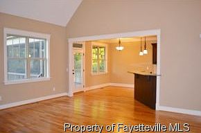 -NEW! 3 bedrms, 2.5 bathrms, over 2300 sq ft. Rocking chair front porch welcomes you into to a gorgeous 2 story foyer. Frml dining rm has coffered ceilings. Kitchen feat custom cabinetry, eat in bar with breakfast area, & ALL stainless appliances. 1st flr mstr bedrm offers his/her walkin closet & full spa bath (dble vanity, tile shwr w/ rain can, grdn tub, & toilet rm). Screened backporch with patio area & 2 car garage. Min to Campbell/Ft Bragg/Raleigh. GRANITE THROUGHOUT! GORGEOUS HARDWOODS!